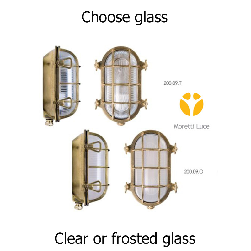 Oval skotlampe i massivt forniklet messing (krom) med valgfrit glas - vælg klart eller mat glas.