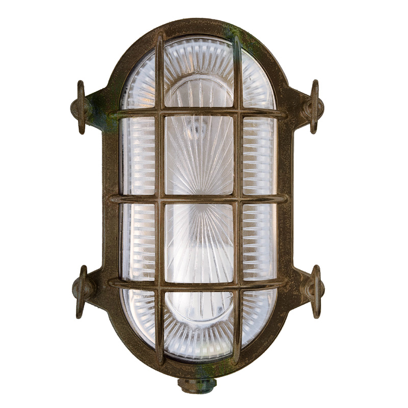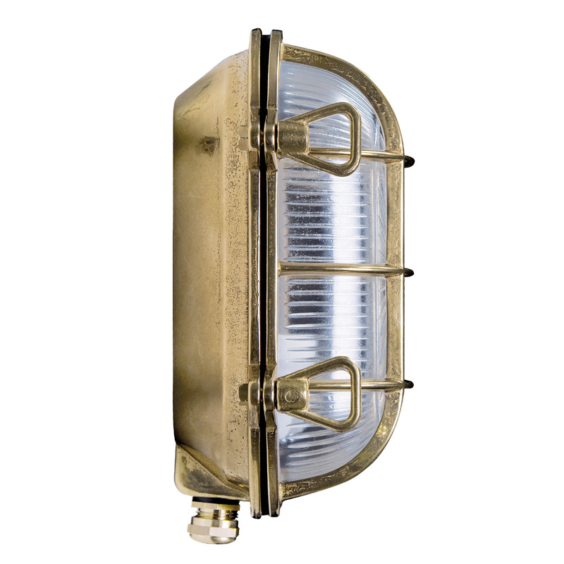 Oval skotlampe i massivt ubehandlet messing eller overfladebehandlet. Valgfrit glas - vælg klart eller mat glas.