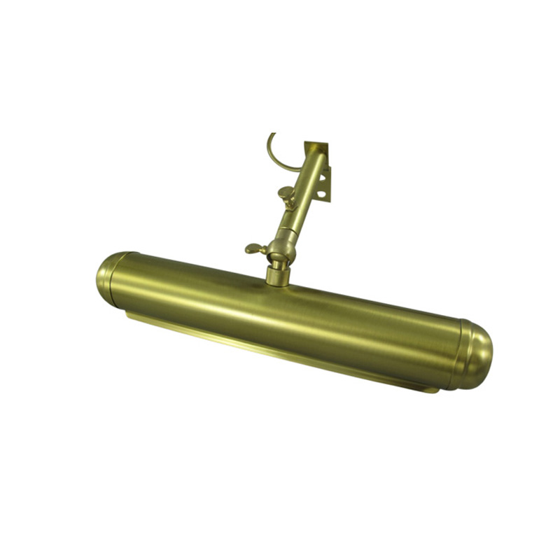Klassisk gallerilampe i mat messing, der passer smukt over malerier eller andet dekorativt på væggen.