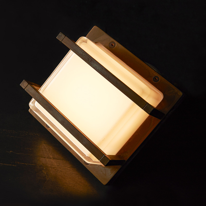 Ice Cubic fremstillet i trykstøbt messing med opal glas og og 2 messingrammer foran for ekstra beskyttelse af glasset.