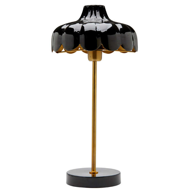 Smart og charmerende bordlampe fra PR Home i blank sort lak og messinglakerede detaljer.